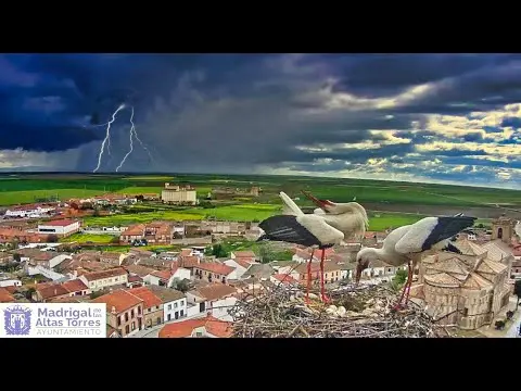 This high-definition live cam shows you a lovely white stork in its nest overlooking the picturesque village of Madrigal de las Altas Torres, in the  Spanish province of Avila.