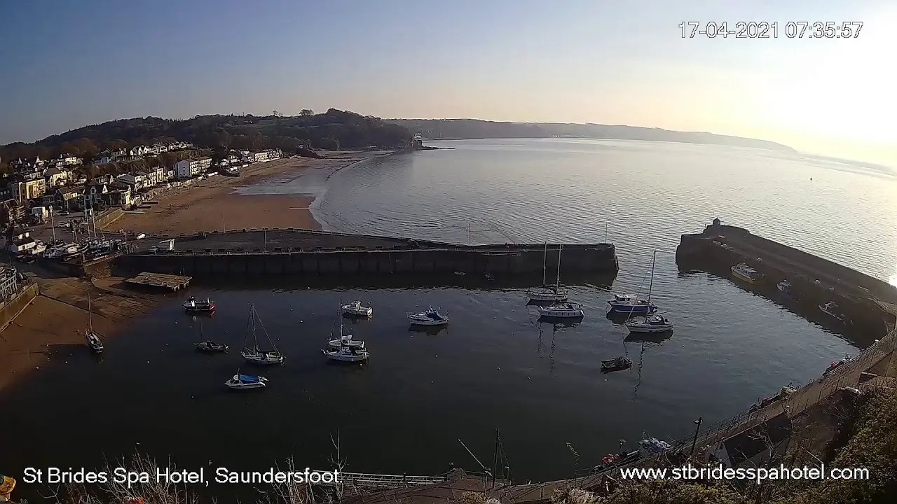 Enjoy the view from St Brides Spa Hotel in Saundersfoot, Pembrokeshire 24/7! Our live camera gives you a glimpse of the breath taking views you can experience from our Front Facing Sea View Rooms, Marine Spa, Cliff Restaurant and Terraces. The webcam is overlooking Saundersfoot Village, Beach and Harbour. Experience it for yourself….