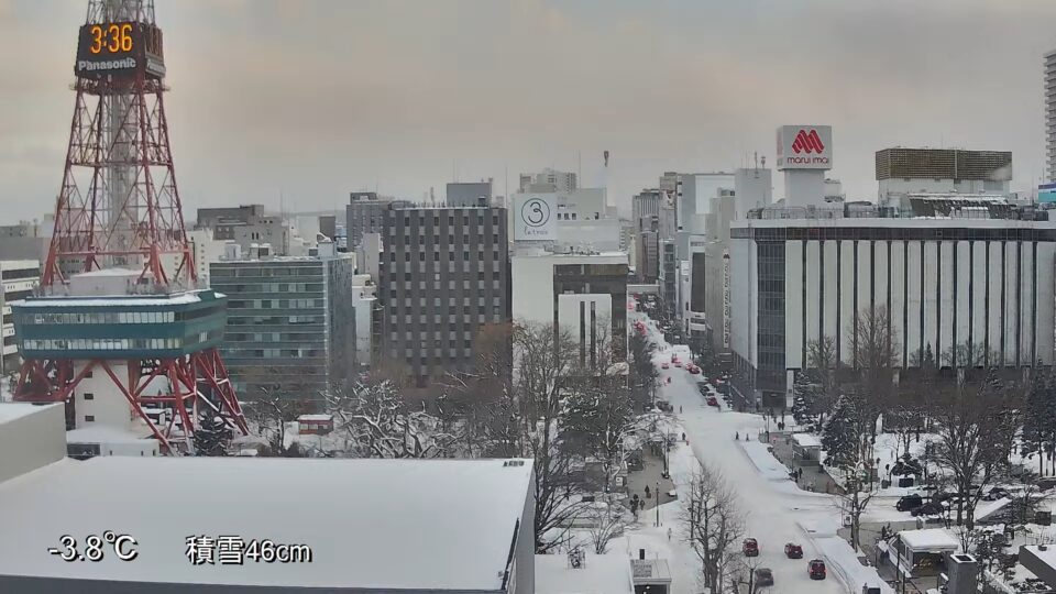 View the passing trains from this live webcam overlooking the Sapporo Station in Sapporo, the capital city of Hokkaido Prefecture, Japan. Keep in mind that the camera usually shows JR Sapporo Station, but it occasionally switches to TV information programs in the morning and evening. JR Sapporo Station is the primary long-distance station serving Sapporo, Hokkaido’s largest city. The railway is linked to the subway Sapporo Station, and it is served by most lines of the Hokkaido Railway Company, including the Hakodate Main Line. The station is located in the heart of Hokkaido’s downtown, in the midst of a large shopping area with many hotels and dining options. Above Sapporo Station is the skyscraper Sapporo JR Tower, which stands 173 metres (568 feet) tall and has 38 stories of shopping and offices, as well as an observation deck, heliport, and parking spaces. See our map further down the page for the location of this railway station.