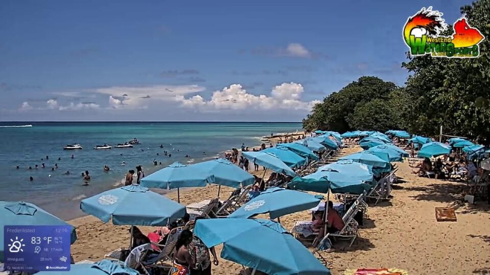 This live streaming webcam shows a panoramic view of the historic Christiansted Harbor, on the island of St. Croix, United States Virgin Islands. From its position at Schooner Bay Condominiums in Mount Welcome, it captures a peaceful coastal scene full of colour and life. Boats drift slowly across the bright Caribbean sea, while the harbourfront shows the rhythm of everyday island living. The water often appears calm and clear, reflecting the sky and surrounding buildings. Visitors can spot small vessels coming and going, adding gentle movement to the view. Christiansted is known for its colourful colonial buildings, seaside boardwalk, and relaxed island pace. Just across the water lies Gallows Bay, where the calm bay and green hills create a peaceful backdrop to the harbour scene. In the distance, Fort Christiansvaern stands as a striking reminder of the island’s past, standing proudly near the water’s edge. Its distinctive structure adds character to the view, blending history with the natural beauty of the surroundings. Visitors often explore the Fort, stroll through the old streets, and discover local museums, small shops, cafés, and the small harbour promenade, where ferries and sailing boats come and go throughout the day. The town also sits close to historic landmarks, nature spots, and popular swimming areas, making it a favourite stop for travellers exploring the island. To find the exact location of this picturesque harbour view in Saint Croix, check the map further down the page.